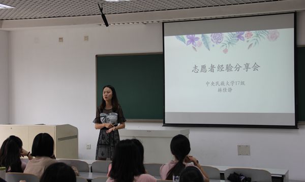 稍后,张研洁学姐作为普林斯顿暑期北京中文培训班(简称“普北班”)项目的对外汉语教师,为学弟学妹们介绍了项目的主要内容并分享了工作经验。学姐表示,虽然项目任务十分紧张,但通过两个月与外国留学生的接触,她获得了更多的一线教学经验,提高了自己的教学能力,同时也与留学生们结下深厚的友谊。她也鼓励新生抓住各种教学实习机会,不断发展自己,提升自己。