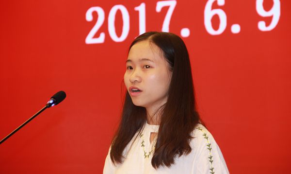 学生代表阮氏爱琼讲话