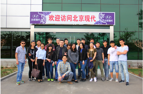 组织我校12级本科对外汉语经贸方向留学生和中亚项目语言班学生到北京现代汽车公司第二工厂参观。