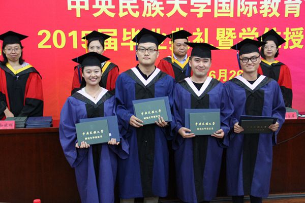 四位学生代表也分别发表了毕业感言。本科毕业生代表,来自印度尼西亚的何友丽与大家分享了大学四年里的青春回忆,对于母校的感恩,她说:“民大是我们生命中的一站,但绝不是生命中的过客。”说到感恩父母,她用一段母语对现场的父母表达感恩之心,哽咽的声音和饱含泪水的双眼,让大家颇为感动。她还献唱了一首自己改编的《没那么简单》,传递了离别的难舍之情,动人的歌声赢得在场所有人的掌声。获得北京市优秀毕业生荣誉的中国硕士毕业生代表彭赟用抑扬顿挫的演讲感谢母校给予的教诲,表示“中文之声传遍美国,汉语之花开遍五洲”是大家共同的期盼。来自缅甸的外国硕士毕业生代表瞿玉蕾,以及来自泰国的博士毕业生代表黄德永也分别表达了对母校的感恩和对同学们的祝福。