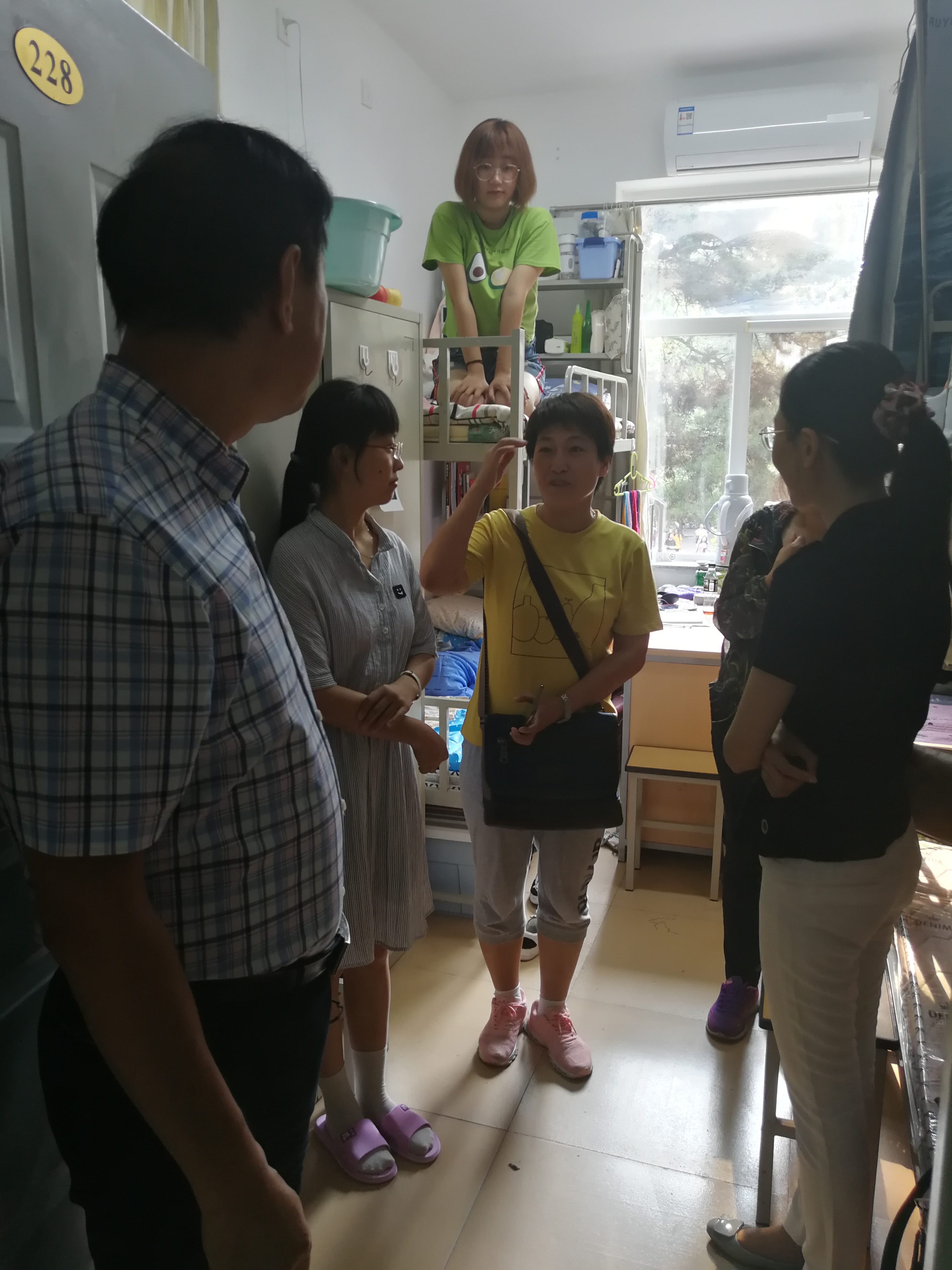 院领导一行先后来到3号楼女生的5间宿舍和6号楼男生的1间宿舍,查看宿舍环境和布置情况,询问新生来自哪儿、对床上用品的价格和质量是否满意等。部分新生家长也在宿舍,周书记亲切地和他们唠起家常并请家长们放心。刀慧娟老师叮嘱新生:有问题随时向辅导员和班导师反映,老师们会及时解决,同学们要尽快融入到大学的学习生活中来。