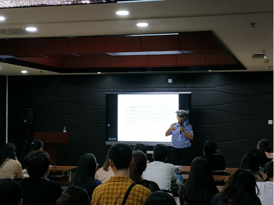李希宝警官首先以一段视频让在场的同学了解了留学生因违法交通规则而产生的严重后果,接着,他详细地为大家介绍了近一年来多起留学生引发的交通事故真实案例,给学生以警醒。最后他希望大家遵守中国的交通规定,注意自身安全,健健康康的在中国学习。