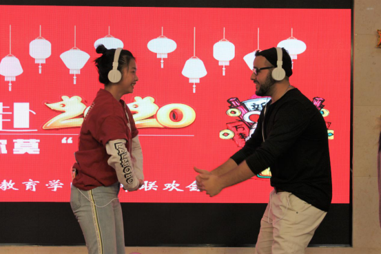 联欢会从游戏“一元钱、五角钱”开始,参加游戏的学生在主持人的口令下,根据钱的数量迅速围在一起,现场欢乐无比。游戏过后,19级中国本科生田雨泽和邵思毅两位同学登台,为我们带来歌曲《我要你身骑白马来》。伴着吉他节奏,一首闽南歌曲为我们娓娓道来“身骑白马,走三关”的故事。