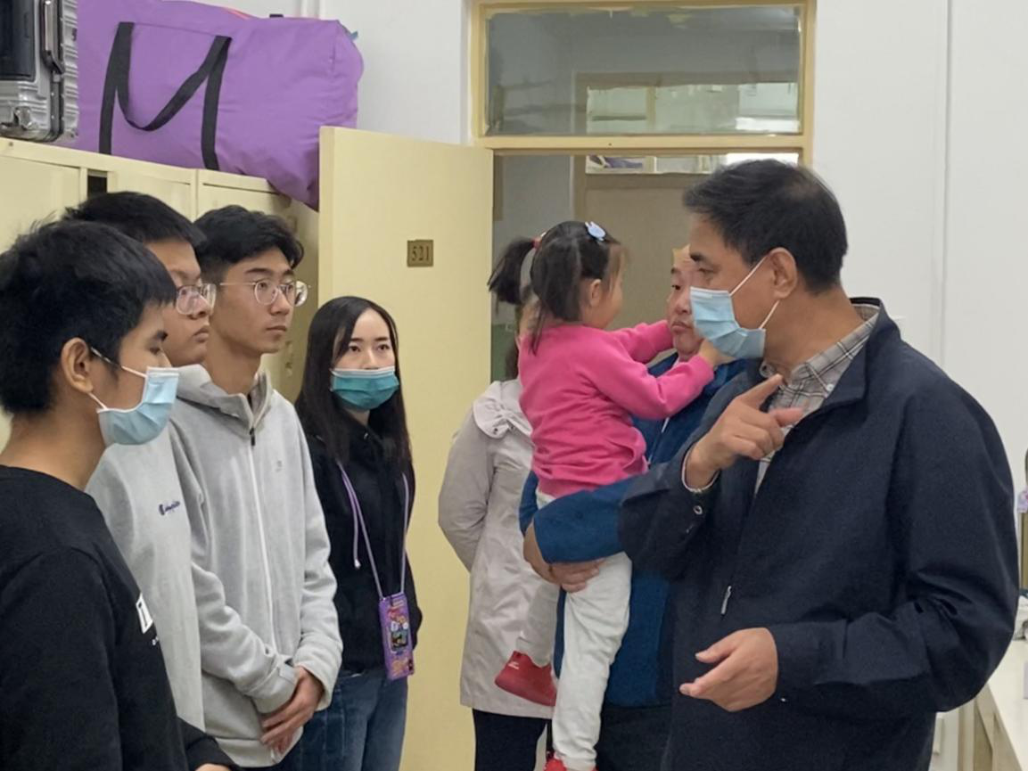 院领导一行先后来到女生3号公寓和男生5号公寓,查看新生精神面貌和宿舍布置情况。