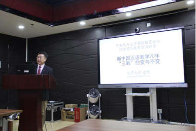 讲座伊始,赵杨教授带领在场师生回顾了汉语教学发展的70个春秋,介绍了新形势下汉语教学面临的挑战与机遇,对被称为“三教”的教师、教材和教学法的现状和发展趋势进行了重点考察。与此同时,赵杨教授带领在场师生讨论了工具层面的“变”和目标层面的“不变”以及两者之间的关系。赵老师精彩的报告无疑进一步加深和拓宽了在座师生关于学科前沿的信息交流以及对学科发展的思考。在讲座最后的问答交流环节,赵老师针对“学科户口”归属问题发表了自己的见解,同时,针对学生对于“志愿者个人发展”的提问进行了探讨和思辨。