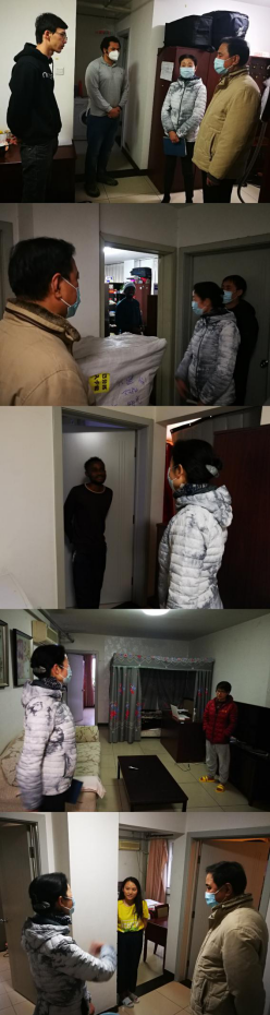 党总支书记周铁海和副院长兼党总支副书记李锷陪同下来到西门留学生公寓亲切看望留校的国际学生。