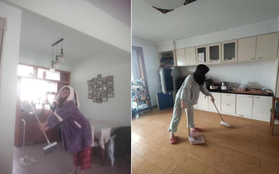 2021级本科生衣芷瑶:疫情期间不能返校给了我更多的在家进行家务劳动的机会,看似平常的拖地在一整套下来我的腰也直不起来,感受到了父母平时的辛苦,以后我除了拖地以外,还要多多帮助父母承担起家务劳动的责任,珍惜劳动成果,在劳动中获得快乐。